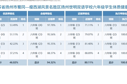 2025年学生体质健康数据排名公示为践行“健康第一”教育理念,落实学生体质健康监测与公示要求,全面推进学生身心健康协调发展,现就我校2025年学生体质健康测试数据优秀率、优良率、合格率、近视率等排名情况公示如下: 公示链接:https://tzjk.jse.edu.cn/fms/public/stud_health_stats5.jsp?unitId=0020000030100180…[详细]