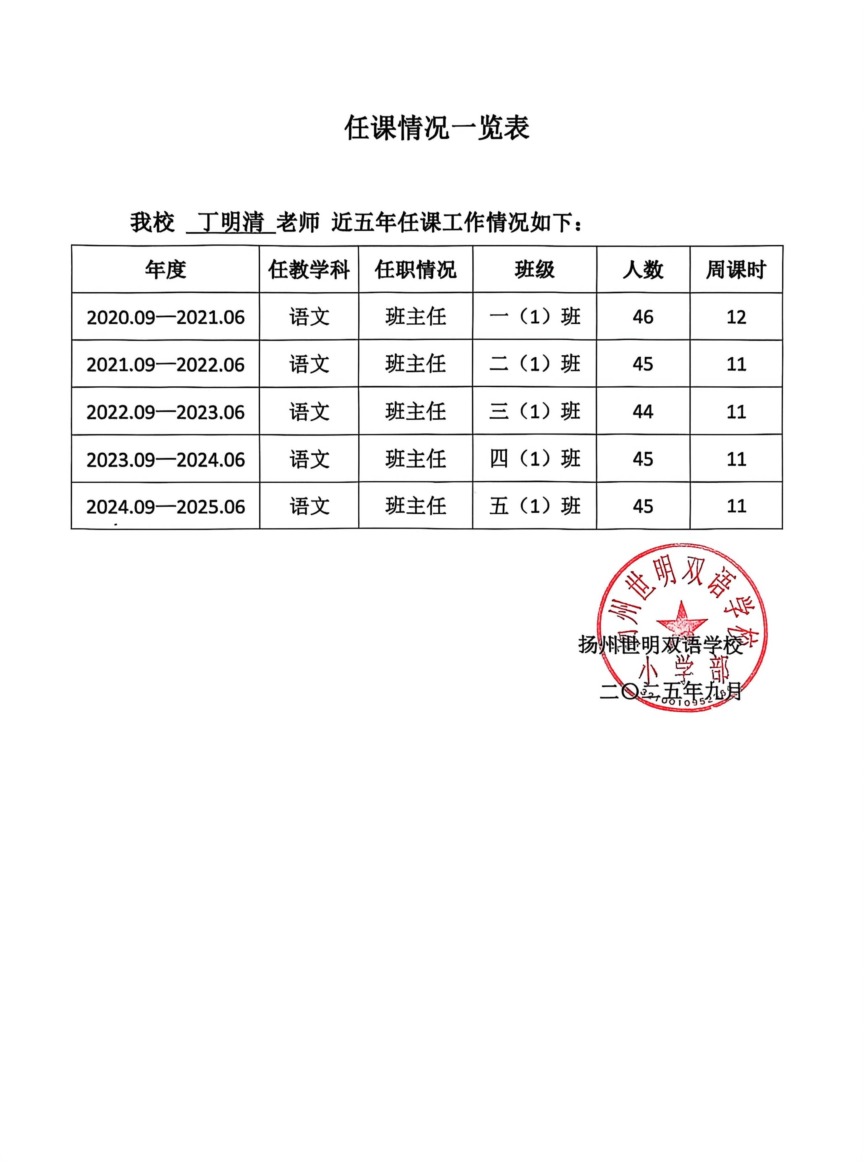 教师任职证明