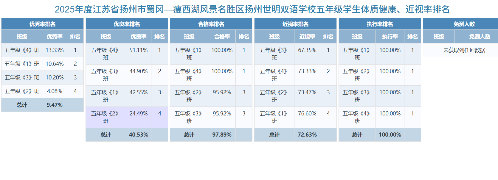 2025年学生体质健康数据排名公示