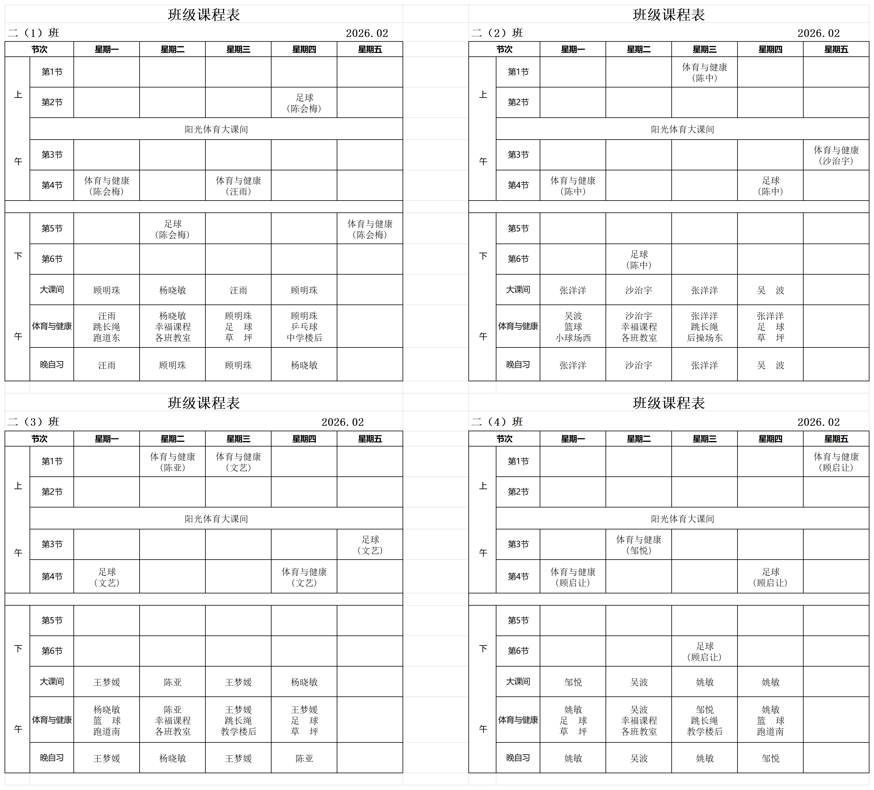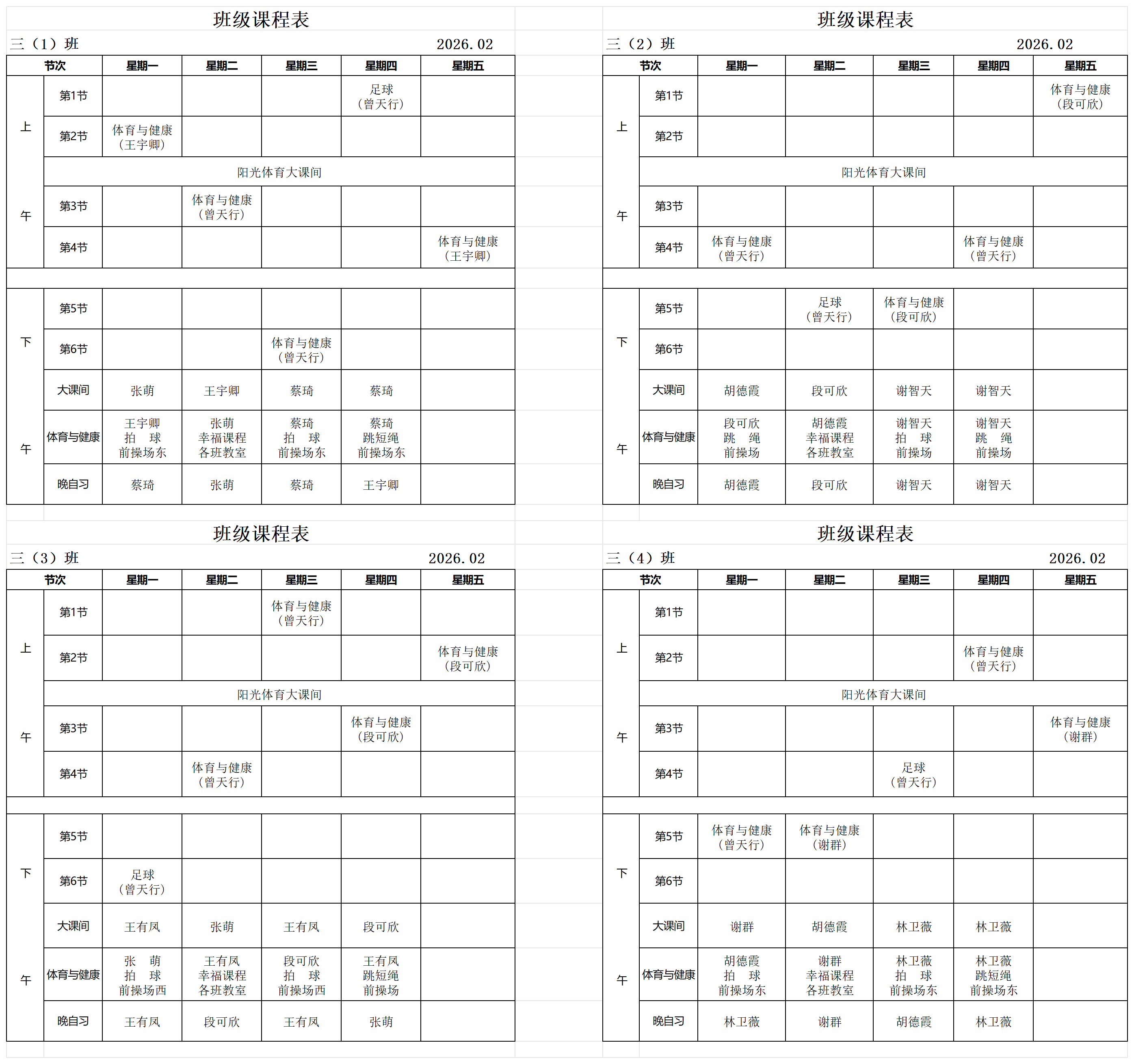2025年体育与健康课程公示