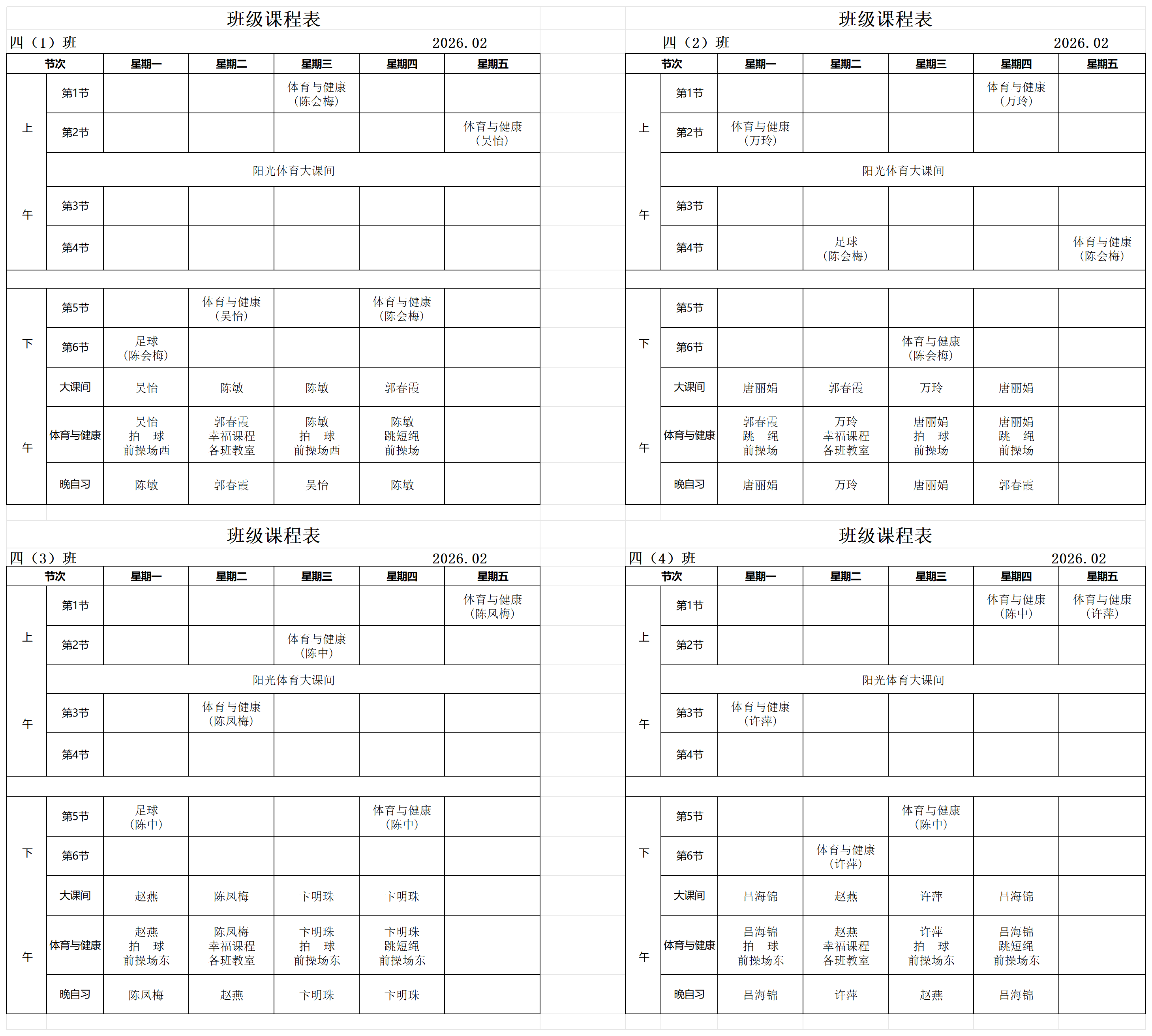2025年体育与健康课程公示